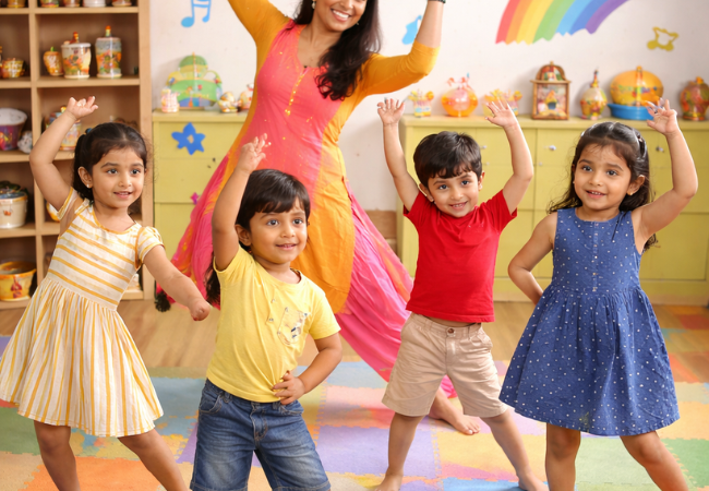 At Steps To Grow Playschool & Day Care, we ensure that every dance session is conducted in a safe, positive, and child-friendly environment. Our spacious activity area is designed to allow children to move freely and comfortably while enjoying music and movement without any risk.