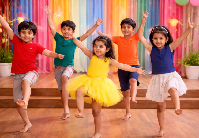 Regular dance sessions enhance gross motor skills, stamina, and body awareness. As children move to music, they develop better control over their movements and build healthy fitness habits from an early age.